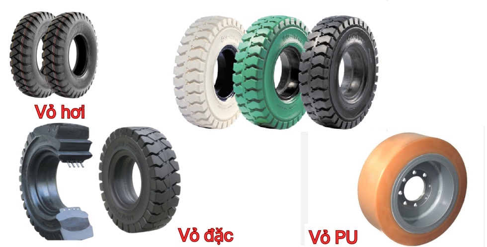 • Bánh xe nâng hơi (pneumatic): Có ruột bên trong, giúp xe chạy êm hơn trên bề mặt gồ ghề.