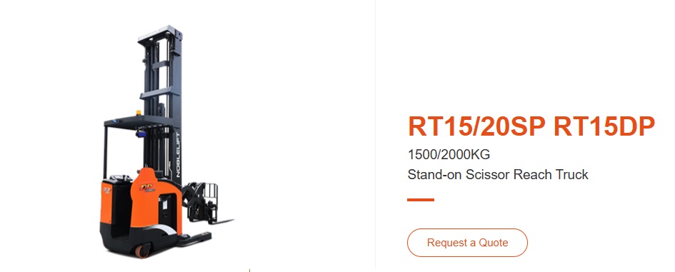 Xe nâng điện RT15SP là dòng xe nâng reach truck đứng lái của thương hiệu Noblelift – nhà sản xuất thiết bị nâng hạ nổi tiếng đến từ Đức. Với tải trọng nâng 1.5 tấn và chiều cao nâng tối đa lên đến 10.500mm, RT15SP là lựa chọn lý tưởng cho kho hàng có lối đi hẹp và yêu cầu lưu trữ hàng hóa ở độ cao lớn.