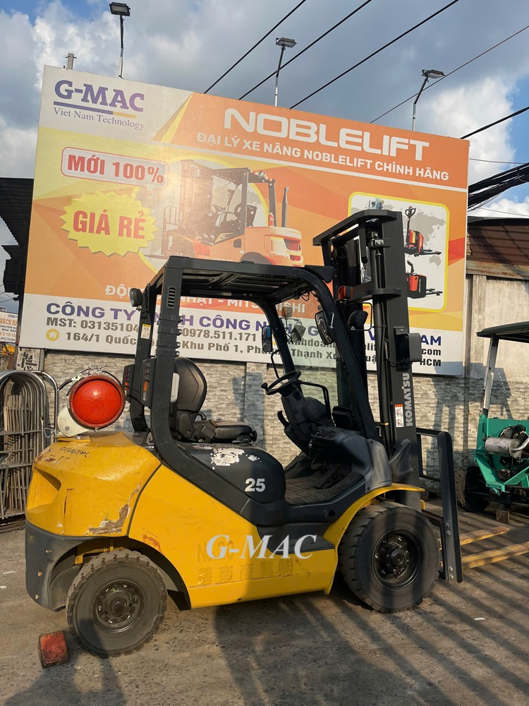 Xe nâng Komatsu: thiết kế chắc chắn, động cơ mạnh mẽ, phù hợp nâng tải trọng lớn.